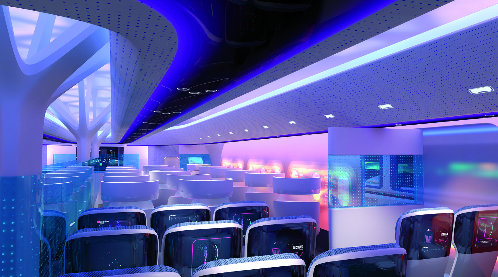 EcoJet, Bombardier’s BWB concept, passed its first scaled-demonstrator flight tests in 2017 and is now starting the second generation with a larger prototype. “Our original idea was to create a more sustainable aircraft without compromising what our customers expect in a business jet," says Stephen McCullough, Bombardier’s senior VP of engineering and product development. That includes hitting benchmarks for speed, altitude, and interior volume that offer at least the same experience as its existing fleet. “The blended-wing-body ticks the majority of those boxes," he says, while potentially reducing emissions by 20 percent. One challenge with the form is maintaining the plane’s airport-friendly footprint, though McCullough focuses on the positive, noting that the aircraft’s taller, wider cabin “opens up a lot of exciting opportunities" for Bombardier’s interior designers.