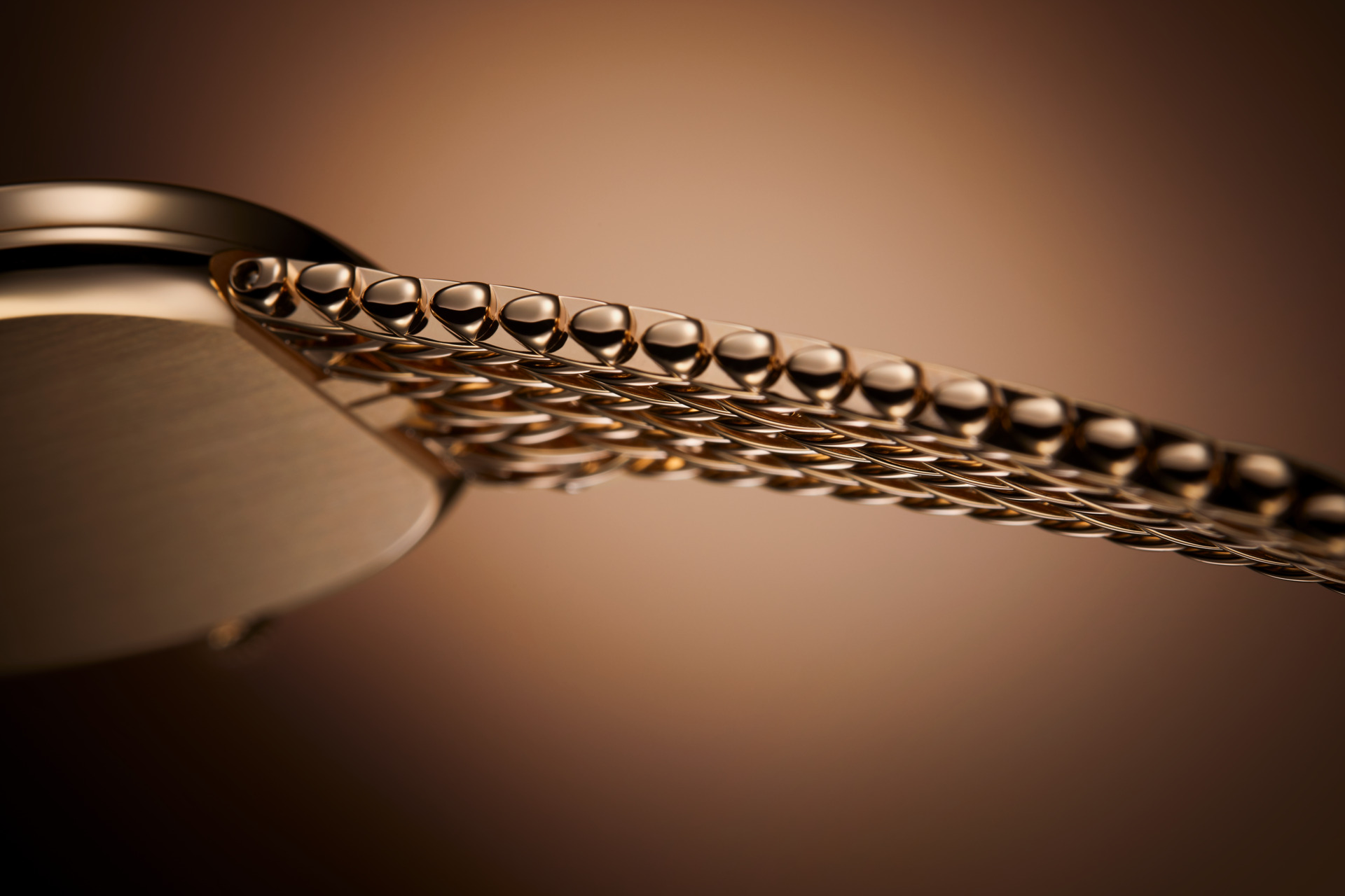 The new chain-style bracelet developed and crafted by a historic partner of Patek Philippe and introduced as an exclusive feature of the Golden Ellipse Reference 5738/1R-001 unites the best of those two worlds, with parts produced by industrial processes on the latest-generation CNC machines, and then assembled and finished by hand, drawing on all the traditional know-how of the artisan chainsmiths.