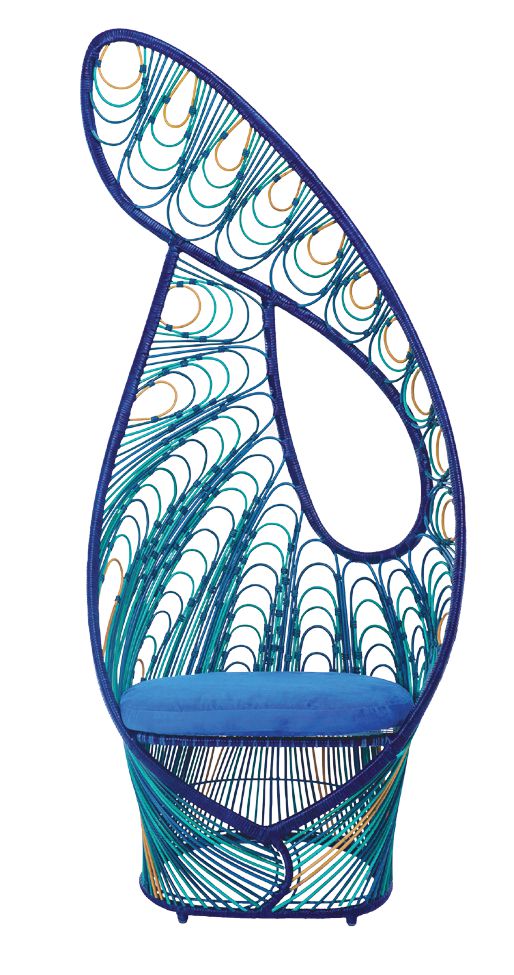 ดีไซเนอร์ Kenneth Cobonpue (kennethcobonpue.com) เป็นที่รู้จักครั้งแรกจากการออกแบบเฟอร์นิเจอร์ที่ทันสมัยและมีประโยชน์ใช้สอย โดยเฟอร์นิเจอร์ที่เขาออกแบบจะใช้วัสดุจากธรรมชาติจากเมืองเซบูในประเทศฟิลิปปินส์หรือเมืองบ้านเกิดของเขานั่นเอง ผลงานของเขาได้รับรางวัลทั่วโลกจาก เขามักจะใช้เทคนิคการผลิตด้วยมือแบบดั้งเดิมผสมผสานเข้ากับการออกแบบที่เป็นแบบนวัตกรรมใหม่ และเก้าอี้นกยูงที่ซับซ้อนตัวนี้ก็เป็นหนึ่งในการออกแบบที่มีเสน่ห์ของเขา ($2,060) เก้าอี้ที่ได้รับแรงบันดาลใจจากขนของนกยูง มีรูปร่างโปร่งสบายให้ความรู้สึกบางเบา แต่โครงสร้างนั้นกลับมีความสำคัญที่สุดและทำด้วยมือทั้งหมด —เจโอ