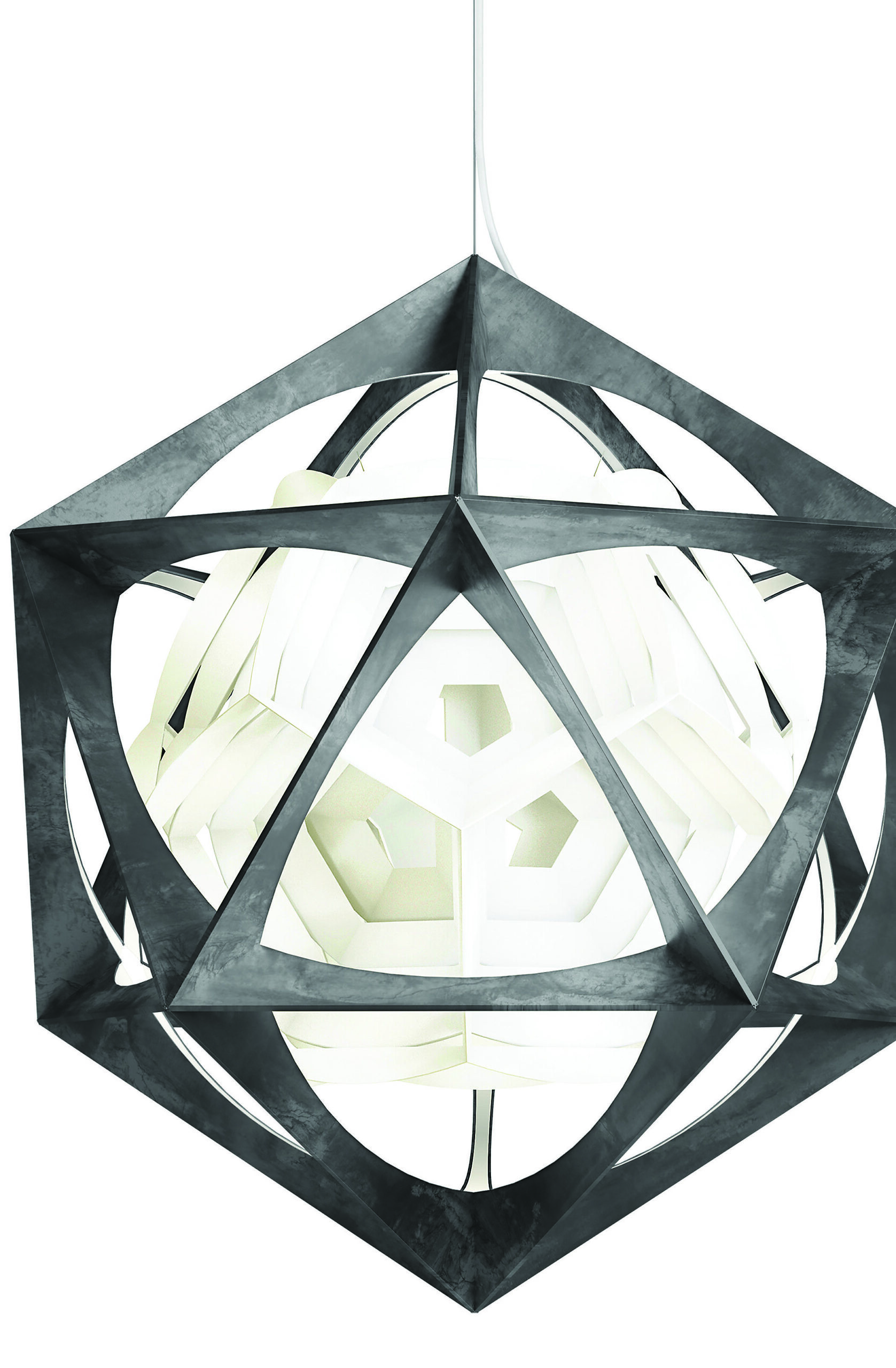 Looking for a master class in such lines and vertices? Danish-Icelandic artist Olafur Eliasson’s latest for Louis Poulsen will give even the brainiest nerd something to scratch her head about. Dubbed the OE Quasi, the pendant contains multitudes—namely, a dodecahedron core within a 20-faced frame. Yet for all its numbers and facets, the piece emits a remarkably gentle glow, with LEDs that cast inward, bathing the intricate center in a cool shine. Contemplating the piece yields a dizzying array of shapes and interpretations. How you see it depends, of course, on your particular point of view. $17,928, louispoulsen.com