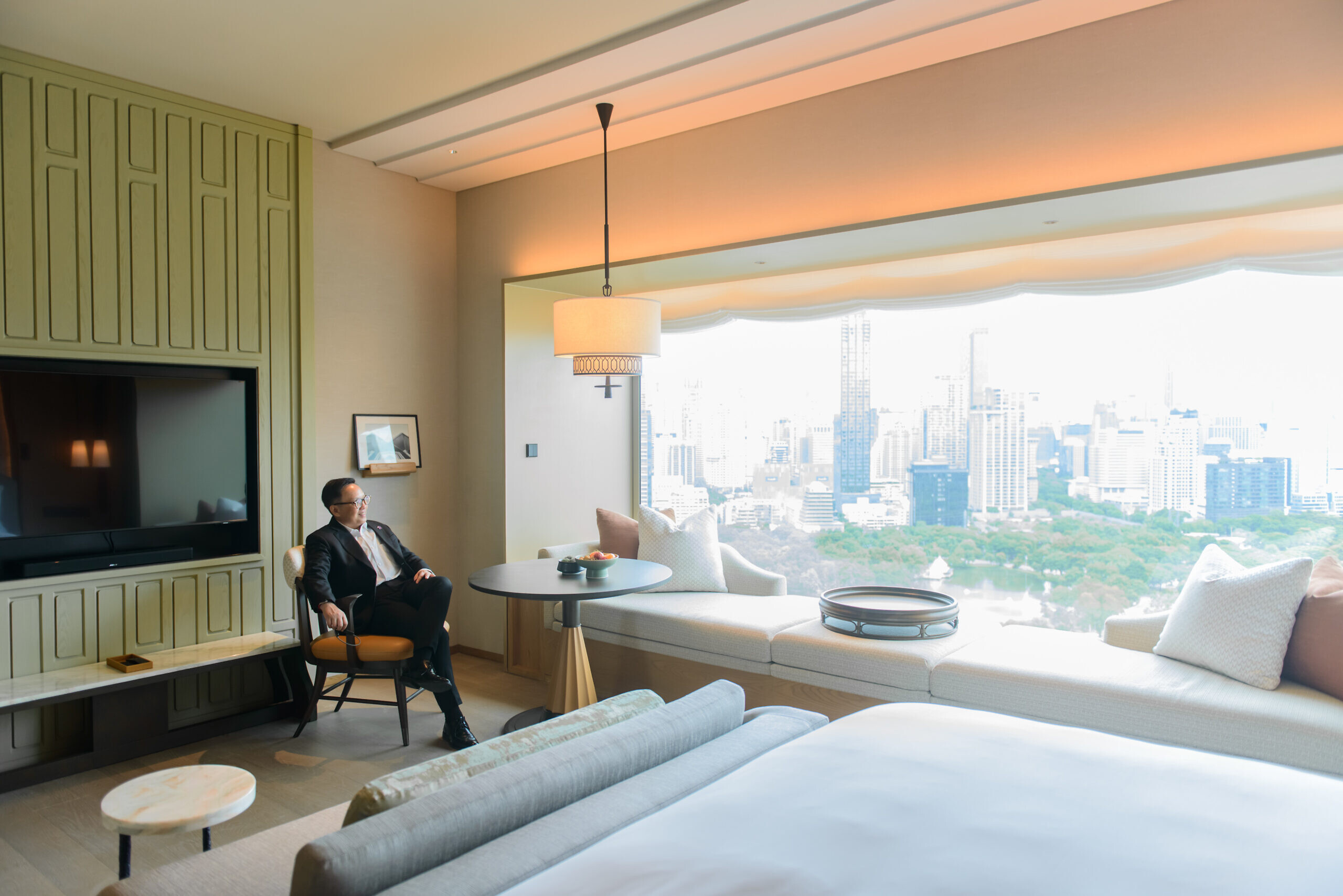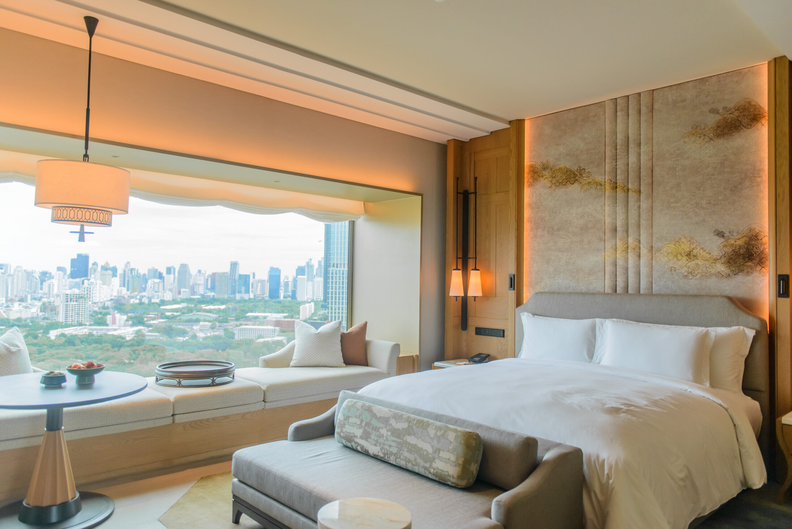 The property features a striking 39-story golden structure, comprising 257 luxurious rooms, including deluxe rooms and suites. Each accommodation offers breathtaking views of the lush greenery of Lumpini Park through expansive floor-to-ceiling windows. The interiors reflect a harmonious blend of modern elegance and traditional Thai aesthetics, with standard room sizes starting at 50 square meters. The interior design has been carefully crafted by the renowned André Fu Studio and P49 Deesign and Associates, both esteemed names in the Asian design landscape, ensuring that the Heritage Floor exudes a distinctive sense of luxury.