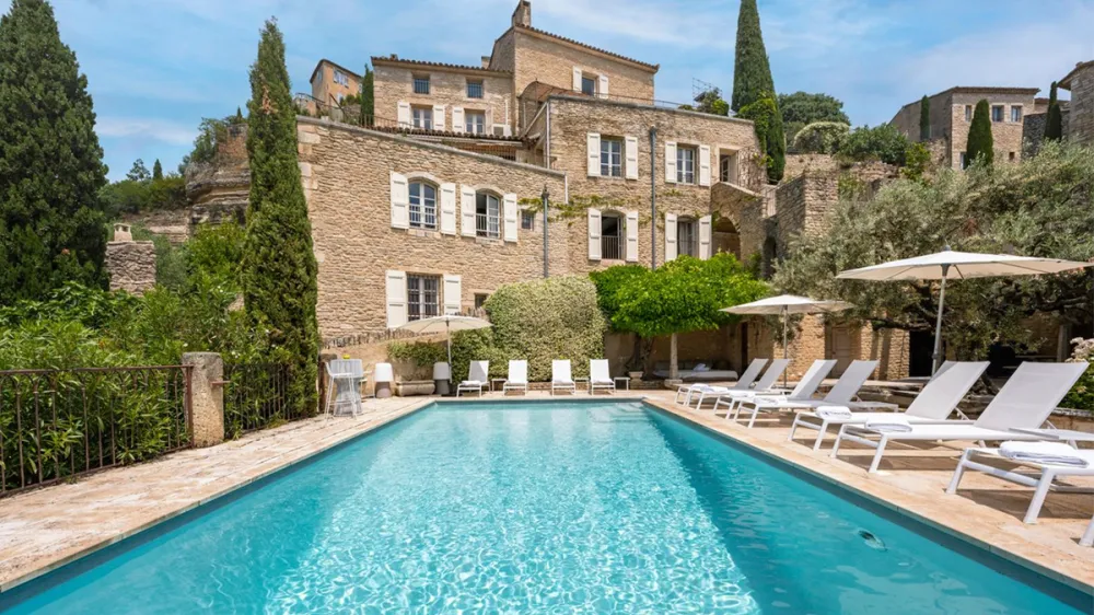 For those seeking modern comforts near Avignon, Noves offers a sleek seven-bedroom villa accommodating up to 14 guests. With a contemporary interior design, a fully-equipped chef’s kitchen, and a large swimming pool surrounded by sun loungers, guests can unwind and indulge in the Provençal lifestyle (starting from $1,654 per night).