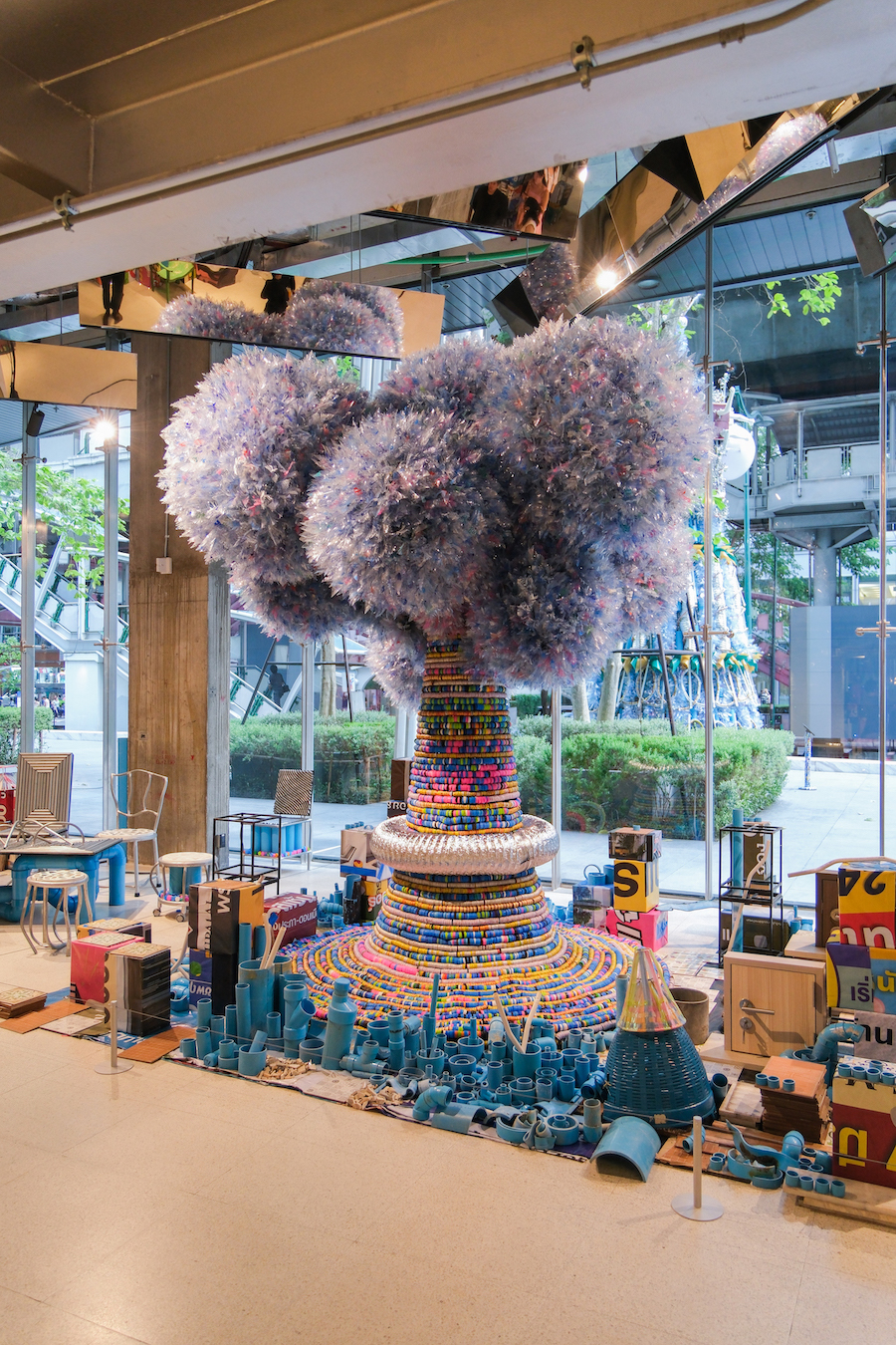 ศิลปะจัดวาง (Installation Art) ที่นำเศษวัสดุจากงานก่อสร้าง เช่น เหล็กเส้น ท่อ อิฐ กระเบื้อง และ ปูน มาชุบชีวิตขึ้นใหม่ให้กลายเป็น “ต้นไม้จำแลง" ที่สามารถแปลงกายได้ 3 ร่าง ใน 3 เทศกาล คือ ฮาโลวีน คริสต์มาส และตรุษจีน
