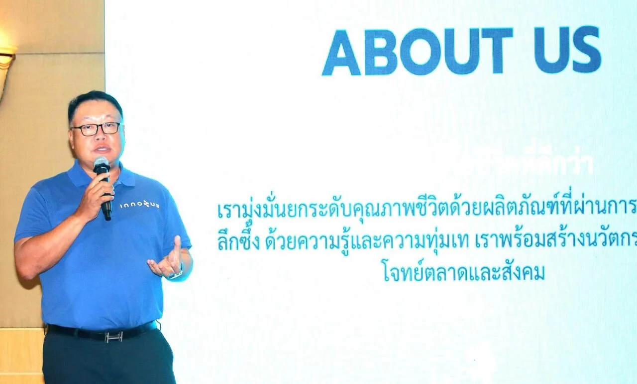 บริษัท อินโนซุส จำกัด ผู้นำด้านนวัตกรรมที่มุ่งเน้นด้านนวัตกรรมเพื่อสุขภาพ และคุณภาพชีวิต วัตถุประสงค์หลักของบริษัท คือ การเพิ่มคุณภาพชีวิตให้กับผู้คนผ่านผลิตภัณฑ์ที่ได้การค้นหา และค้นคว้ามาอย่างดี เราเชื่อมั่นว่า องค์ความรู้ และ ความตั้งใจอันแรงกล้าของเราจะขับเคลื่อนนวัตกรรมไปสู่ความสำเร็จเชิงพาณิชย์ ด้วยการพัฒนาโซลูชั่นล้ำสมัยที่ตอบสนองความต้องการของตลาดในประเทศไทย
