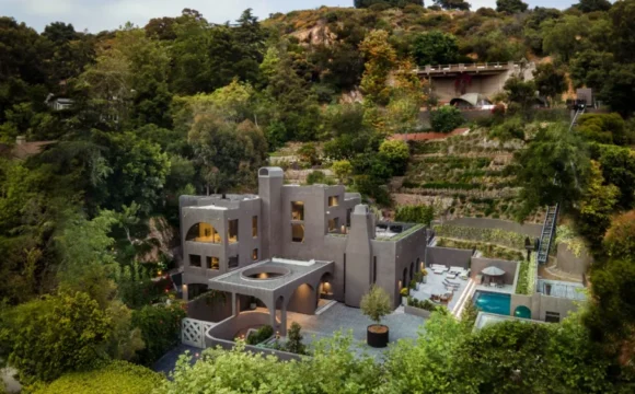 Dubbed the Fold House, the three-bedroom, four-bath Bentonville abode was completed this year on the edge of downtown and less than an mile to the world-renown Crystal Bridges Museum of American Art, which counts Frank Lloyd Wright’s Usonian-style Bachman-Wilson House among its permanent collection. Apart from its folded, single-slope metal roof, a few of the 3,000-square-foot pad’s notable features include matte black cabinetry, linear windows, and a private garden. John Mayer of Better Homes and Gardens Real Estate holds the $3.2 million listing.