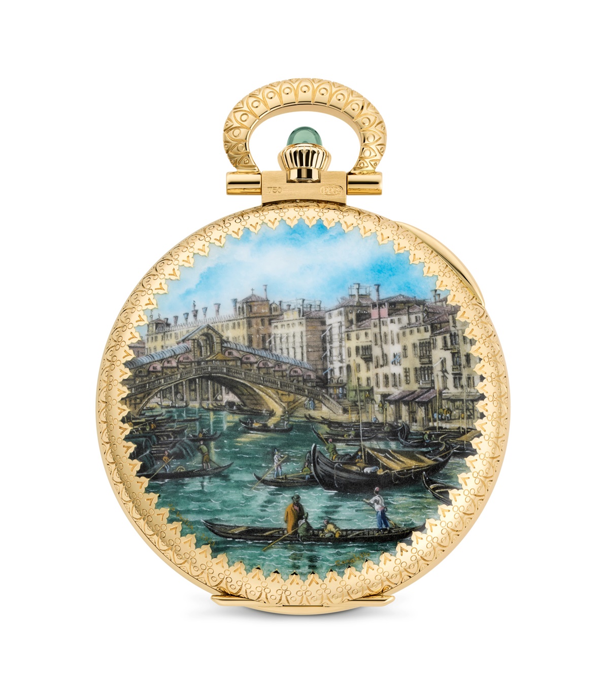 การเยี่ยมชมงานส่วนต่อไปเป็นการแสดงถึงเมืองแห่งสปาและทิวทัศน์ทางน้ำ เช่น เรือใบที่ทำจากไม้ของประเทศจีนใน มณฑลเจ้อเจียง และโปสการ์ดโทนสีซีเปียร์เก่าของท่าเรือเจนีวา ที่สร้างสรรค์จากการวาดภาพขนาดเล็กบนการเคลือบ ลงยาอินาเมล ภาพวิวของสะพานริแอลโทในเวนิส โดยกานาเลตโต (ซึ่งตีความและนำเสนอโดยการวาดภาพขนาดเล็ก บนการเคลือบลงยาอินาเมลร่วมกับการสลักลวดลายด้วยมือ) ทิวทัศน์ของทะเลสาบธูน อันได้รับแรงบันดาลใจจาก เฟอร์ดินานด์ โฮดเลอร์ จิตรกรชาวสวิสที่ยิ่งใหญ่ ที่นำเสนออยู่บนนาฬิกาข้อมือเวิลด์ไทม์ มินิท รีพีทเตอร์ ส่วนนาฬิกา พกรุ่น 992/184G-001 “Lake Geneva in Winter" ที่มีพื้นหลังภาพสร้างสรรค์ด้วยการสลักลวดลายด้วยมือแบบ กิโยเช่ แสดงให้เห็นภาพท้องฟ้าที่มีการกระจายแสงและลวดลายของคลื่นจากทะเลสาบ โดยการเคลือบลงยาอินาเมล เป็นสีเหลือบมัวเพื่อดึงความงดงามของแสงฤดูหนาวอันอบอุ่นให้สะท้อนออกมา จากนั้นช่างฝีมือด้านการเคลือบลงยา ได้วาดภาพขนาดเล็กบนการเคลือบลงยาดังกล่าว ด้วยการใช้สี 11 สีเพื่อตกแต่งอย่างละเอียดประณีต