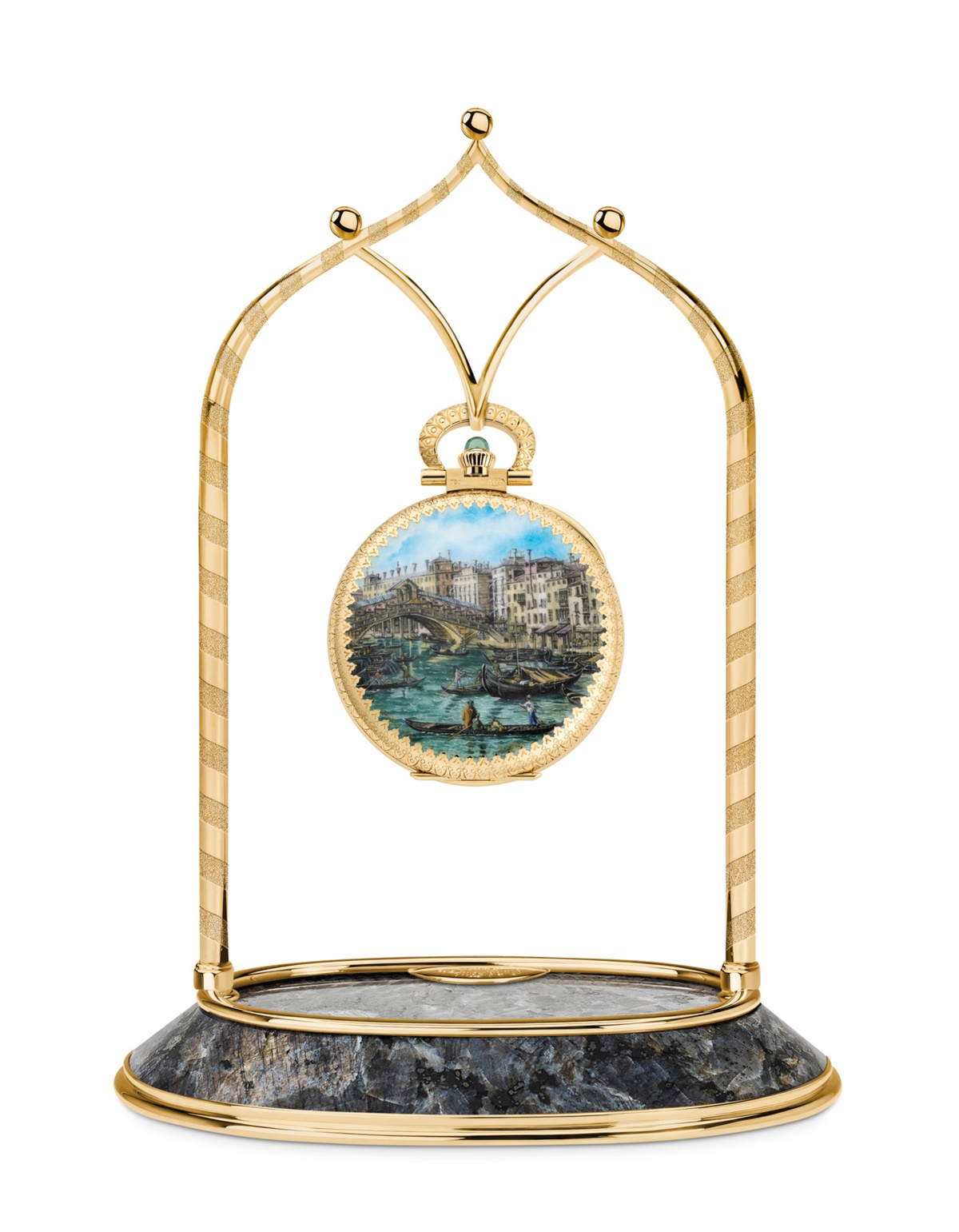 การเยี่ยมชมงานส่วนต่อไปเป็นการแสดงถึงเมืองแห่งสปาและทิวทัศน์ทางน้ำ เช่น เรือใบที่ทำจากไม้ของประเทศจีนใน มณฑลเจ้อเจียง และโปสการ์ดโทนสีซีเปียร์เก่าของท่าเรือเจนีวา ที่สร้างสรรค์จากการวาดภาพขนาดเล็กบนการเคลือบ ลงยาอินาเมล ภาพวิวของสะพานริแอลโทในเวนิส โดยกานาเลตโต (ซึ่งตีความและนำเสนอโดยการวาดภาพขนาดเล็ก บนการเคลือบลงยาอินาเมลร่วมกับการสลักลวดลายด้วยมือ) ทิวทัศน์ของทะเลสาบธูน อันได้รับแรงบันดาลใจจาก เฟอร์ดินานด์ โฮดเลอร์ จิตรกรชาวสวิสที่ยิ่งใหญ่ ที่นำเสนออยู่บนนาฬิกาข้อมือเวิลด์ไทม์ มินิท รีพีทเตอร์ ส่วนนาฬิกา พกรุ่น 992/184G-001 “Lake Geneva in Winter" ที่มีพื้นหลังภาพสร้างสรรค์ด้วยการสลักลวดลายด้วยมือแบบ กิโยเช่ แสดงให้เห็นภาพท้องฟ้าที่มีการกระจายแสงและลวดลายของคลื่นจากทะเลสาบ โดยการเคลือบลงยาอินาเมล เป็นสีเหลือบมัวเพื่อดึงความงดงามของแสงฤดูหนาวอันอบอุ่นให้สะท้อนออกมา จากนั้นช่างฝีมือด้านการเคลือบลงยา ได้วาดภาพขนาดเล็กบนการเคลือบลงยาดังกล่าว ด้วยการใช้สี 11 สีเพื่อตกแต่งอย่างละเอียดประณีต