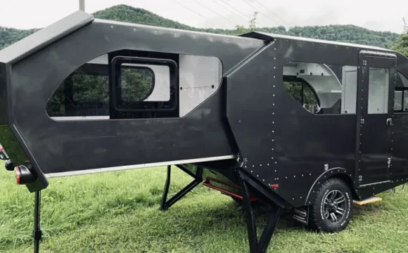 Mammoth Overland’s latest model is a burly off-road trailer designed to withstand anything it encounters in nature. The appropriately named Extinction Level Event (ELE) rides on a set of chunky all-terrain tires and has an angular aluminum body reinforced with steel armor and skid plates. If that doesn’t sound like enough, you can upgrade to Level 3 bullet-proof armor. There’s also a built-in bear spray system too, for added security. The ELE, which starts at $67,000, is pretty compact since it’s a tear-drop trailer, but it can comfortably sleep two and has an integrated workstation inside its cabin. There’s also a swing-out kitchenette in the back for cooking.