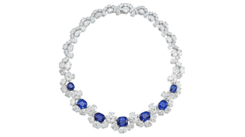 An exceptional Kashmir sapphire and diamond necklace by David Morris, in a swag design ($3 million – $5 million).