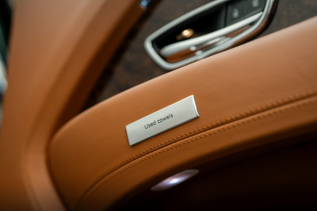 ผู้โดยสารยังจะได้สัมผัสรายละเอียดอันประณีตจากมูลิเนอร์ อันได้แก่ กล่องกระดาษชำระและช่องใส่กระดาษชำระที่ใช้แล้วสั่งทำพิเศษบริเวณประตูห้องโดยสารด้านหลัง, ปลั๊กชาร์จแบบ USB สำหรับห้องโดยสารด้านหลัง, ป้ายโลหะขนาด 70 มิลลิเมตรบริเวณที่พักแขนด้านหลัง, โต๊ะพับแบบอัตโนมัติ, เบาะโดยสารด้านหน้า, แผงหลังคา และกาบบันไดแบบเรืองแสงที่สั่งทำพิเศษด้วยคำว่า ‘THE PENINSULA’