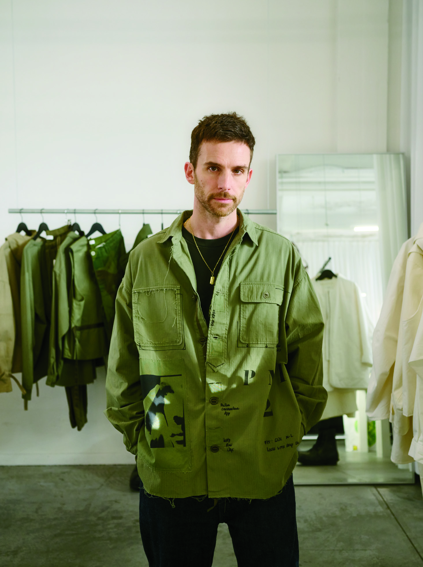 Berryman also has a deep passion for Japanese craftsmanship, which he translates into pieces such as a handsewn patchwork jacket that uses 19th-century Japanese boro cloth. “There’s a district called Koenji in Tokyo where I could spend weeks," he says, discussing the street style in Japan that inspires him. “It’s about the silhouettes—I like super-oversize pants, oversize shirts, dropped shoulders."