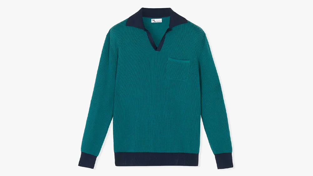A banded bottom give this long-sleeved Doppiaa polo a retro flavor. But a contrast-color Capri collar keeps it contemporary, whether it’s being worn on its own against the skin or over a tee as a lightweight layer.