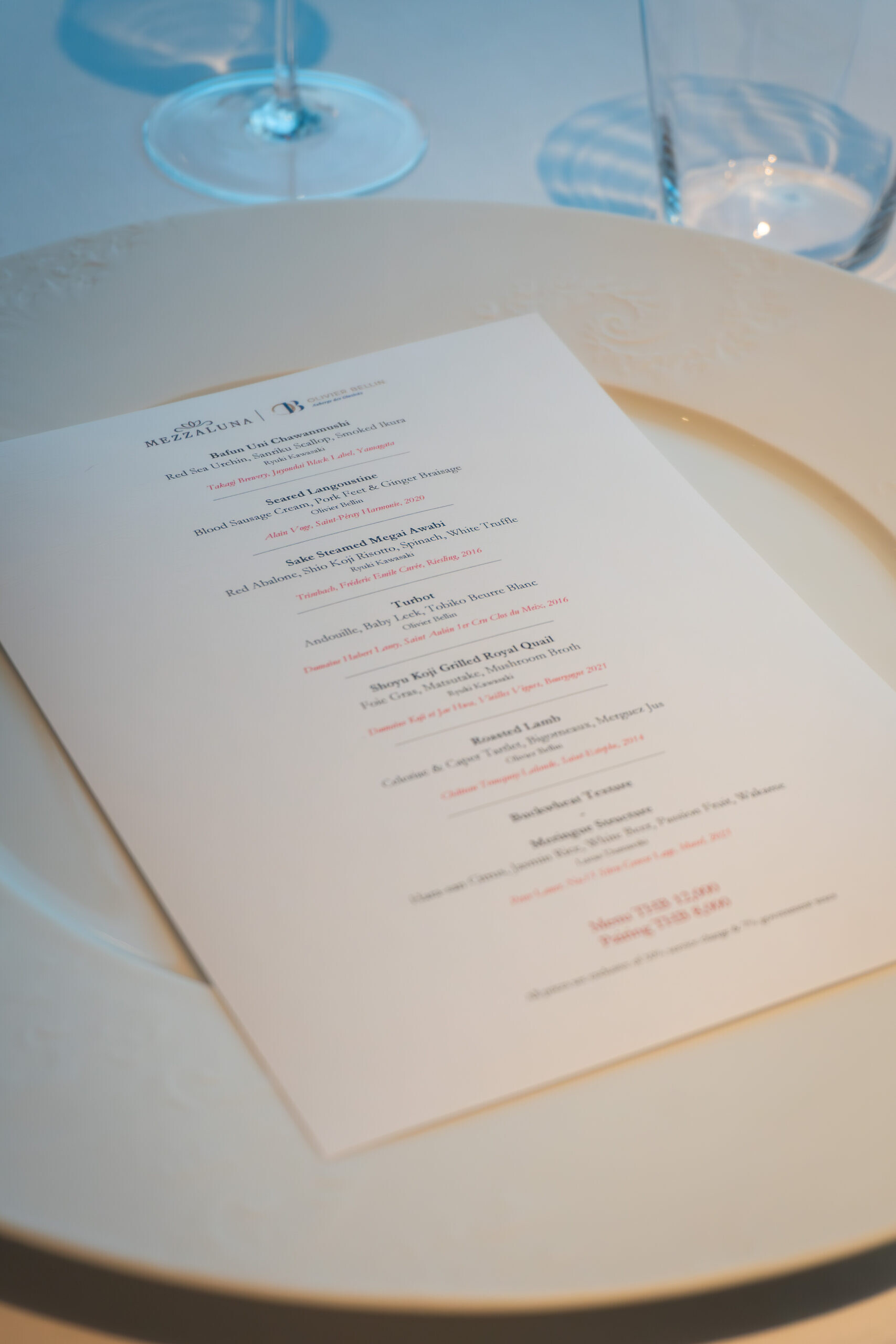 The first night at Mezzaluna, the renowned two-Michelin-star restaurant at lebua at State Tower, hosted a 4 Hands culinary event from November 21-23, 2024, where Michelin-starred chefs Ryuki Kawasaki and Olivier Bellin collaborated for an exclusive dinner at Mezzaluna.