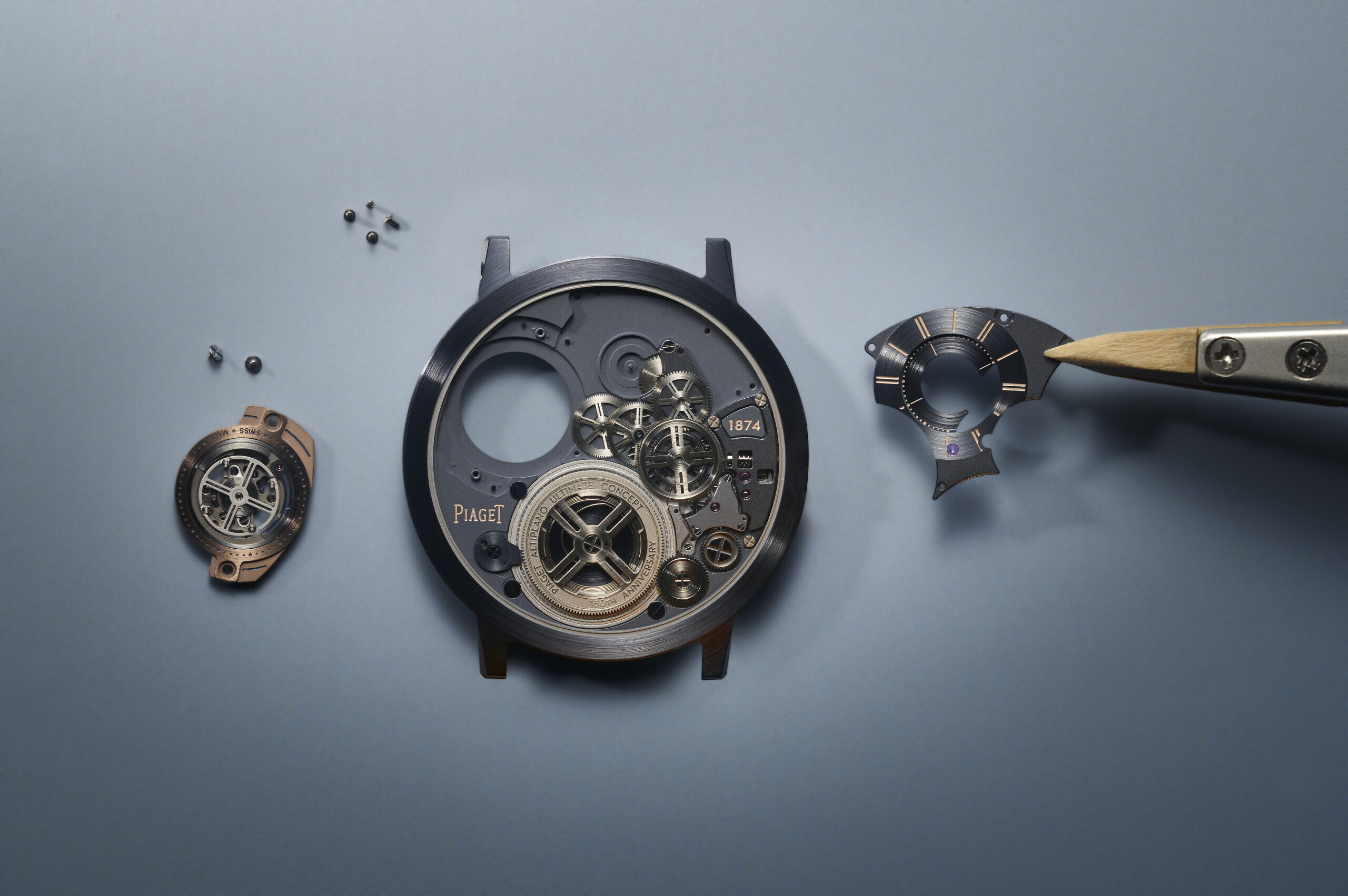 จำนวนเหล่านี้ไม่ได้เป็นเพียงชุดตัวเลขเท่านั้น อีกนัยนึงมันคือการประกาศความสำเร็จของเมซง ซึ่งแน่นอนว่าเบื้องหลังเหล่านั้นมีเรื่องราวมากมายซ่อนอยู่: การแข่งขันกับเวลา ที่ทุกขั้นตอนดำเนินการอย่างเป็นความลับภายในโรงงานของเพียเจต์ ณ La Côte-aux-Fées ใช้เวลากว่า 3 ปีในทำงานร่วมกันอย่างหนักของเหล่าทีมนักพัฒนา วิศวกร ช่างนาฬิกา นักออกแบบ เพื่อตั้งประเด็น หาข้อโต้แย้งนับไม่ถ้วน