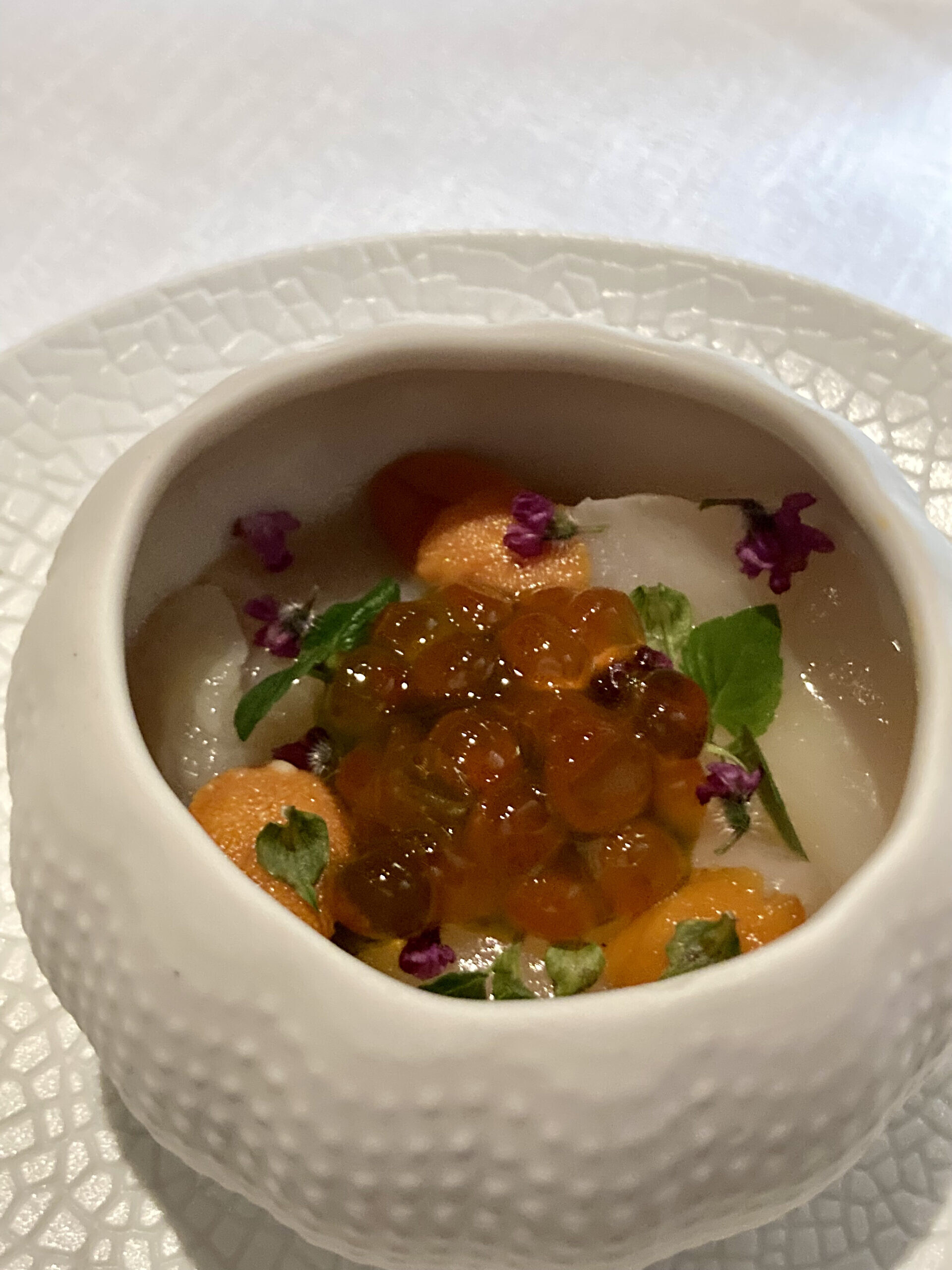 These culinary virtuosos collaborated to craft a visionary tasting menu that was nothing short of spectacular. Standout dishes like the Bafun Uni Chawanmushi, infused with red sea urchin and smoked ikura, and the Sake Steamed Megai Awabi, elegantly paired with white truffle, showcased the chefs’ unparalleled creativity and technical mastery. Each course was more than a meal—it was an experience, with every detail meticulously curated to delight the senses.