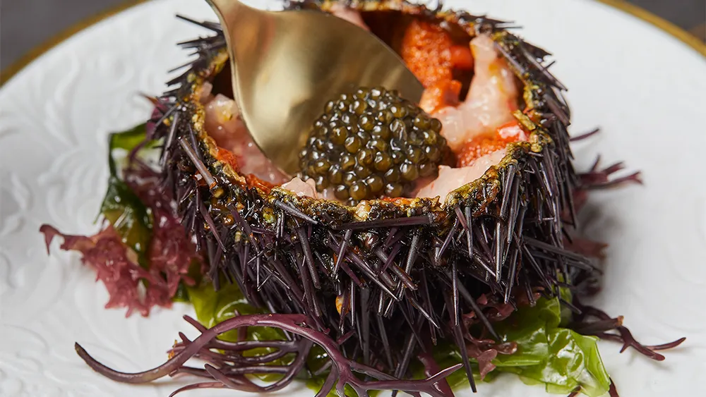 Then head downstairs, through the soaring mirrored lobby to the former ballroom, where renowned chef Rafa Zafra has opened his decadent new restaurant, Amar Barcelona, as a celebration of the city, the Mediterranean, and all things seafood. With its navy walls, gold detailing, and grand chandeliers, the space retains its former opulence and now has the menu to match. From crayfish carpaccio to tiger oysters to classic sole meunière, the dishes are all bracingly fresh and exploding with flavor.
