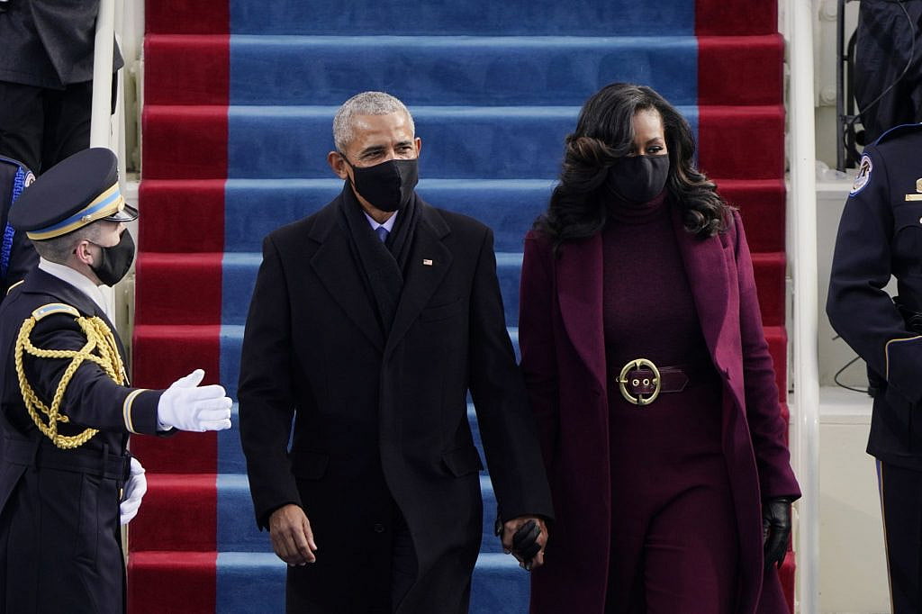 ไม่เพียงแต่ประธานาธิบดี, รองประธานาธิบดีและคู่สมรสเท่านั้นที่มาในแบรนด์อเมริกัน เพราะอดีตสุภาพสตรีหมายเลข 1 ทั้ง 2 คนอย่าง Michelle Obama (มิเชล โอบามา) และ Hillary Clinton (ฮิลลารี คลินตัน) นั้นก็เลือกเครื่องแต่งกายจากแบรนด์อเมริกันเช่นกัน โดย Michelle เลือกสวมชุดเดรสชมพูอมม่วงจาก Sergio เหมือนกับ Kamala ส่วน Hillary เลือกใช้ Ralph Lauren ในสีม่วงเหมือนกับ Kamala ซึ่งสีม่วงนั้นเป็นทั้งสีของการเรียงร้องสิทธิ์ออกเสียงเลือกตั้งของเพศหญิง (พร้อมสีขาวและเหลือง) และยังเป็นสีที่ได้จากการผสมสีประจำของสองพรรคการเมืองอย่างรีพับลิกัน (แดง) และเดโมแครต (ฟ้า) ทำให้มันถูกใช้ในการแสดงออกอย่างแยบยลในงานนี้