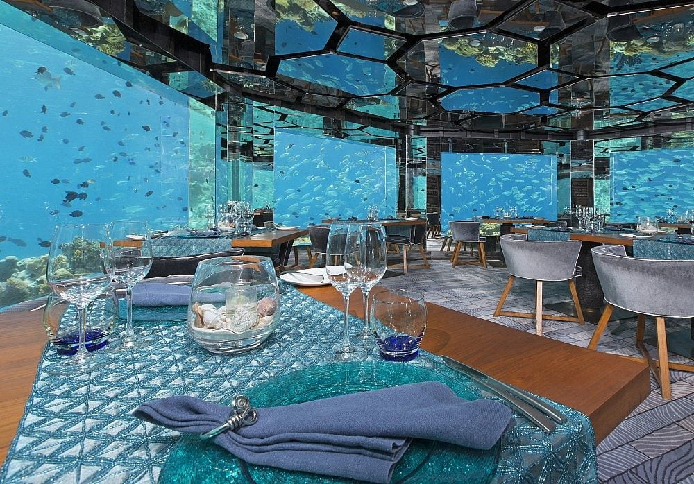 Dining at Kihavah is stylish yet relaxed, with the four main options fittingly named Sea, Fire, Salt, and Sky. Sea is the world’s first underwater wine cellar and one of only a few underwater restaurants globally. Fire is a Teppanyaki restaurant for Japanese food enthusiasts. Salt offers tasty Asian cuisine while Sky is a mellow rooftop bar perfect for drinking in the starry night sky.