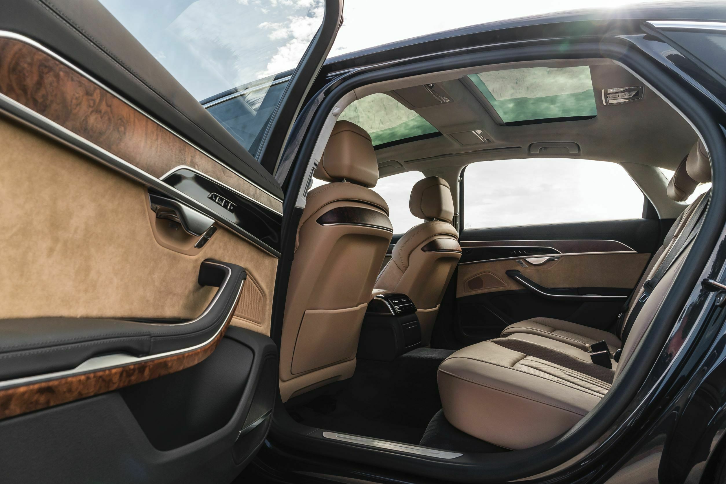 การขับเคลื่อนแบบสี่ล้อของ Audi ทำให้ A8 มั่นใจในการบังคับเลี้ยวแบบ All-Wheel แบบไดนามิกสำหรับการจัดการมุมแคบ มีตัวเลือกให้เลือก เช่น ล้อขนาด 20 นิ้ว ระบบเสียงขั้นสูง Bang & Olufsen 3D และแพ็คเกจ Executive Rear-Seat Comfort พร้อมระบบนวดเท้า
