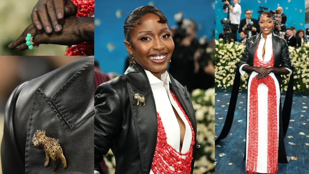 A custom Ferragamo dress and jacket paid homage to the actress’s family, while a suite of vintage Cartier pieces (including a pair of Dinh Van for Cartier earrings from the 1960s; a gold, ruby, and enamel dog brooch; and a chrysoprase and gold ring) added even more authenticity to the look.
