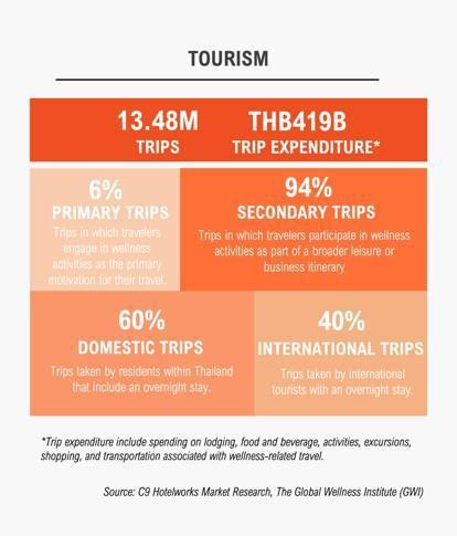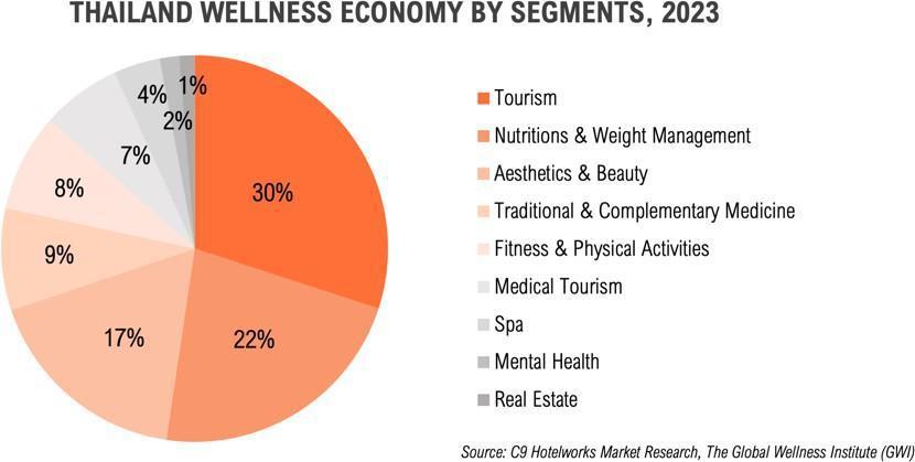Insights from the Wellness Economy Report 2025, released by C9 Hotelworks, highlighted the scale and momentum of the sector. Total wellness trip spending in Thailand rose from THB194 billion (USD5.39 billion) in 2022 to THB419 billion (USD11.64 billion) in 2023, driven by a sharp rise in international visitors—who grew from 23% to 40% of the wellness travel market. Thailand’s overall wellness economy was valued at THB1.4 trillion (USD38.89 billion) in 2023, placing it among the top 10 in Asia-Pacific.