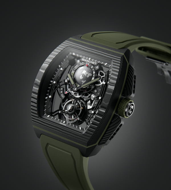 Bianchet unveils its latest watch creation, the Flying Tourbillon Sport GMT. Designed for globetrotters, and adapted to a dynamic lifestyle, this watch embodies the very essence of refinement. Fusing timeless design with cutting-edge performance and centuries-old craftsmanship, this timepiece perfectly balances aesthetics and technology.
