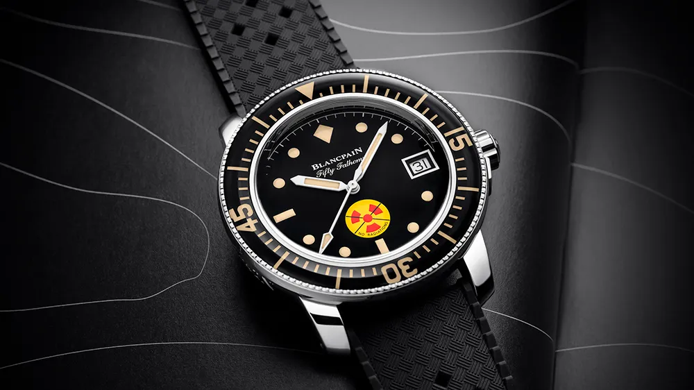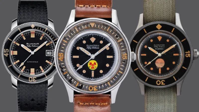 The Fifty Fathoms is a watch that played a pivotal role in casting the die of the modern dive watch genre as we know it. The original was a hulking, 41 mm watch with a massive rotating bezel that used a bakelite insert. It also boasted a crown that you could use underwater and an “O" ring seal in the caseback that allowed for a robust depth rating of, well, fifty fathoms (about 91 meters). Many variations of the Fifty Fathoms were produced in both military and civilian spec, each following the same general formula of a highly legible dial with large circular luminescent hour markers, a practical rotating bezel, and a well-sealed case that could perform underwater. Unbeknownst to Blancpain at the time, these qualities would go on to inform generations of dive watches to come.