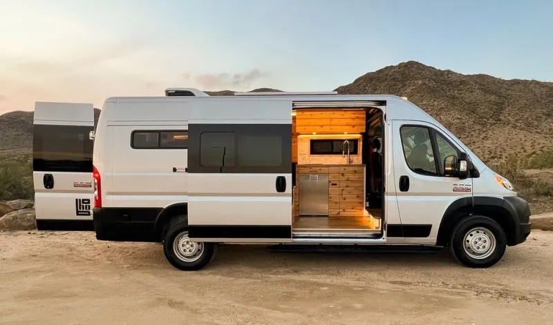 Struggling to find a camper van that’s just right? Boho might be able to help. The Arizona-based company specializes in conversions and will work with you to create the vehicle of your dreams. The company offers several 20- to 24-foot layouts—of which the most popular is the appropriately named Old Faithful—that can be further tailored to meet your needs, whether your priority is multi-season versatility, lots of cooking space, or spending serious amounts of time on the road. The company also offers plenty of cool add-ons too, like wood paneling and flooring.