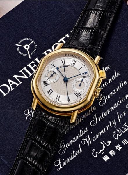 - A Daniel Roth, reference C137BASL, rare yellow gold monopusher chronograph wristwatch, circa 1990, sold for HK$486,400, 4.8 times its low estimate