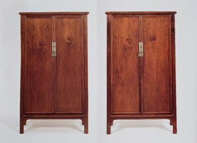 An Extraordinary Pair of Huanghuali Sloping-Stile Wood-Hinged Cabinets, Yuanjiaogui, Late 16th to Early 17th Century (Estimate: HK$3,000,000 – 5,000,000)
