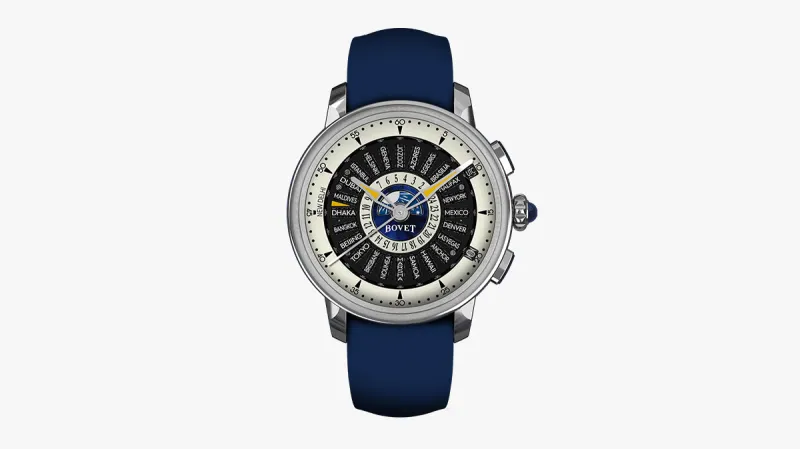 The Récital 30 is a smaller, daily wear version of last year’s Récital 28, the first mechanical timekeeper to solve the Daylight Saving Time problem. World time watches were previously unable to adapt to DST start and end times in different countries, but an innovative roller system allows the Récital 30 and Récital 28 to display 25 global time zones (including local time in New Delhi, India) during the four time periods of the year—Coordinated Universal Time, American Summer Time, European and American Summer Time, and European Winter Time. The Récital 28 was limited to 60 pieces, and while the Récital 30 is not limited, only 30 can be produced in 2025. It’s semi-customizable: buyers can change the city names, as well as choose from several colors of the 24-hour dial and the minute track. There are two versions: one in 18-karat red gold and the other in titanium.
