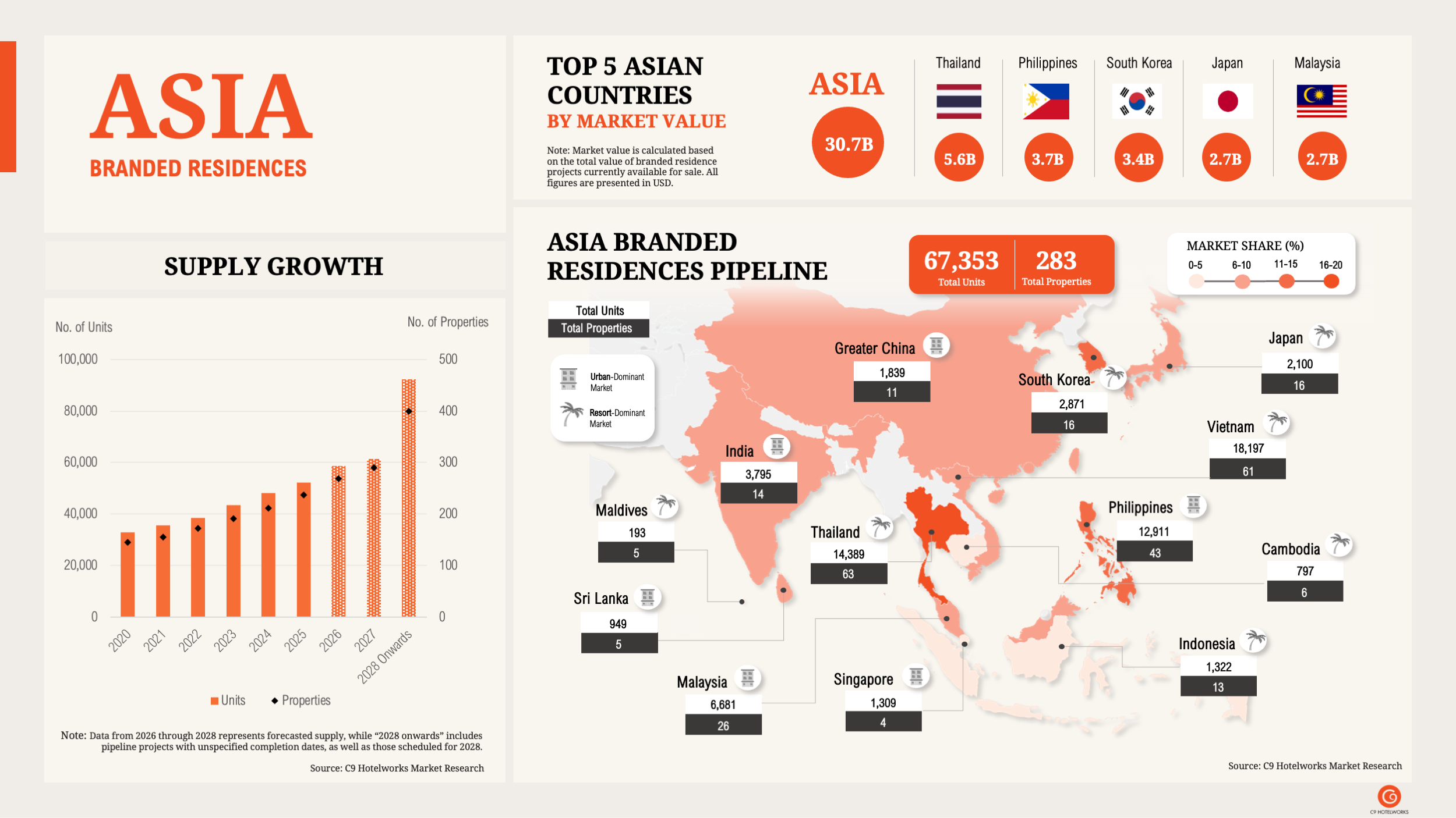 Vietnam is forecasted to lead Asia with one in four branded residence units, recorded as the region’s largest pipeline.