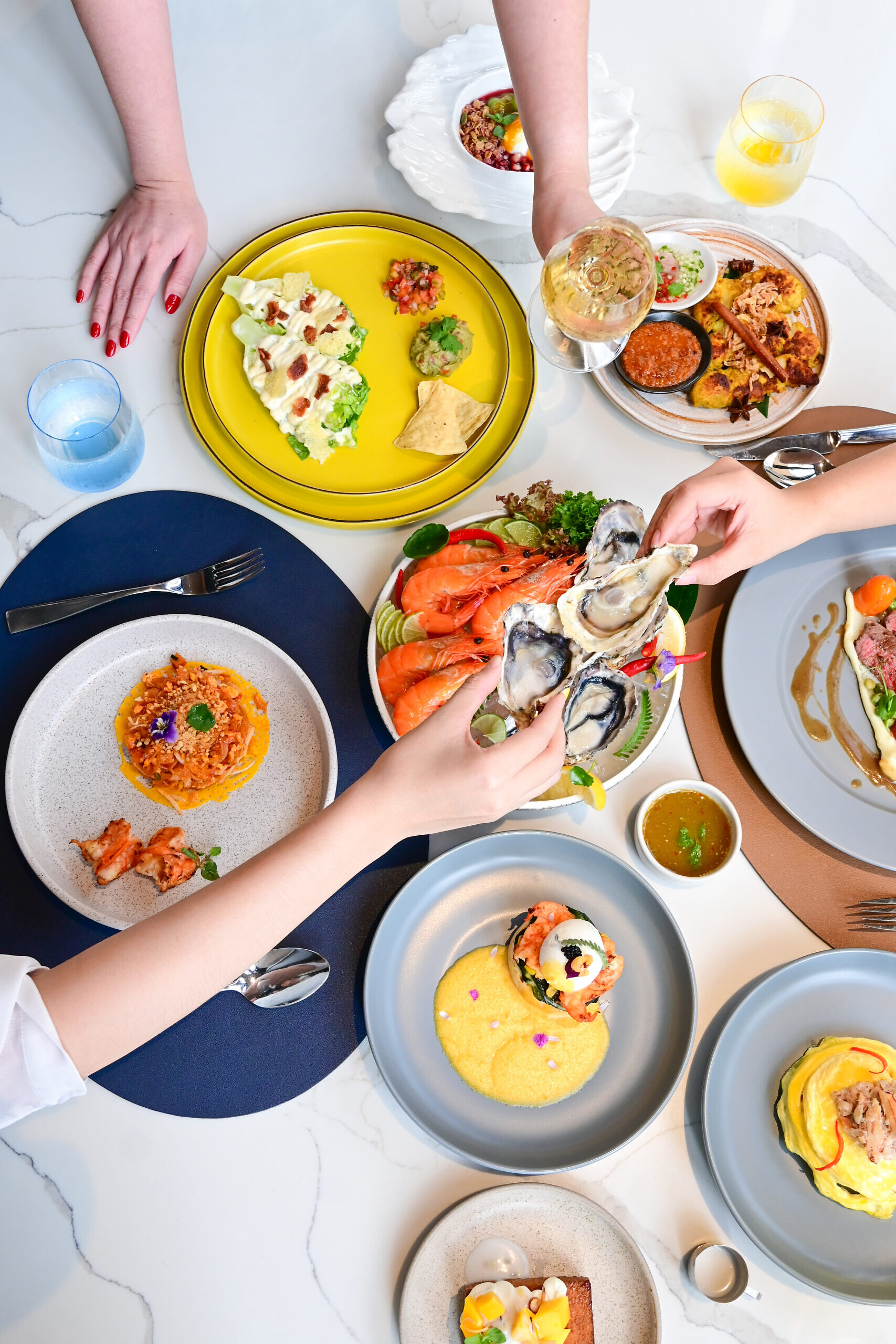 This brunch experience invites guests to enjoy a thoughtfully curated selection of chef-recommended À La Carte dishes and popular breakfast favorites. From the melt-in-your-mouth Thai Wagyu Striploin to the creamy Fettuccini Khao Soi Inspired, each dish offers a unique flavor journey. The Tijuana Caesar brings a zesty kick, while the Pad Thai Chao Phraya delights with jumbo tiger prawns and bold Thai flavors. Beloved breakfast items like the earthy Spinach Toast and the indulgent Mango Salted Caramel Toast add a comforting touch. Just before dessert, the Seafood on Ice Platter makes a cool and refreshing appearance, setting the stage for a sweet finale with the iconic Khao Niew Ma-muang.