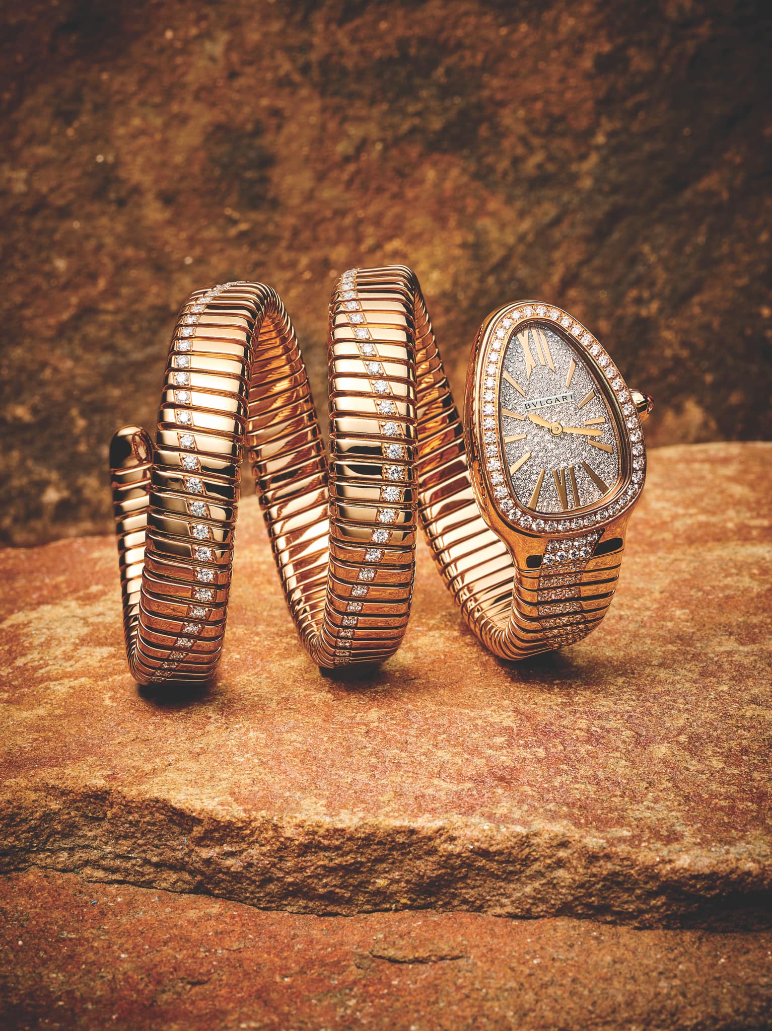 สร้อยข้อมือ Tubogas Serpenti ของ Bulgari ไม่ได้ได้รับการออกแบบใหม่นับตั้งแต่ก่อตั้งเมื่อ 75 ปีที่แล้ว สิ่งนี้ได้เปลี่ยนไปในเดือนมกราคม เมื่อมีการเปิดตัว Tubogas เรือนแรกประดับเพชร Tubogas แบบดั้งเดิมใช้สายทองคำบางมาพันรอบสปริง ซึ่งบางที่ก็เกินไปสำหรับการฝังเพชร