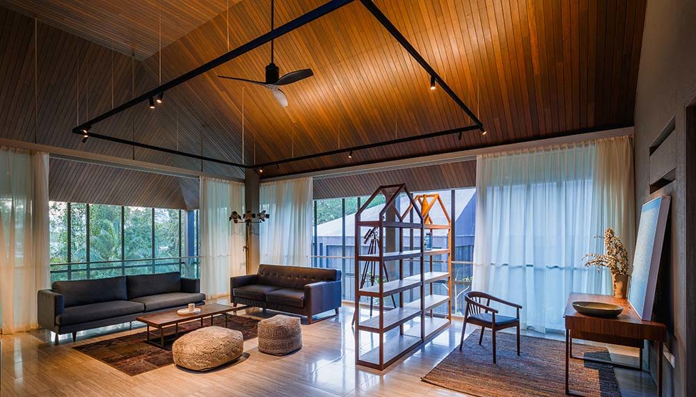 From that archetype, Yip borrowed two key elements: the pitch roof and the verandah. While the pitch roofs pay homage to the colonial bungalow, the verandahs perform double duty. In both traditional and contemporary expressions, they protect the inner house from the elements. At the same time, they also afford the occupants a measure of privacy.