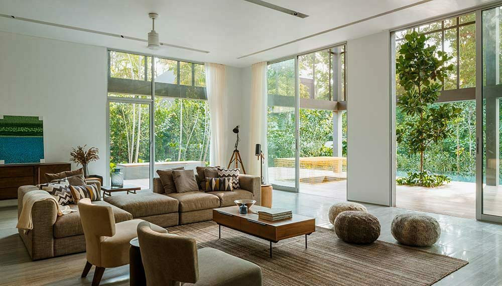 Internally, the houses feature open plans that give the occupants tremendous flexibility in space planning. The openness also facilitates cross-ventilation once the windows and doors are open – a feature key to tropical living. There’s a fine balance of opacity and transparency, of solid walls and fenestrations. Walls screen the occupants from noise and neighbours, while windows and skylights offer carefully controlled views and natural illumination.