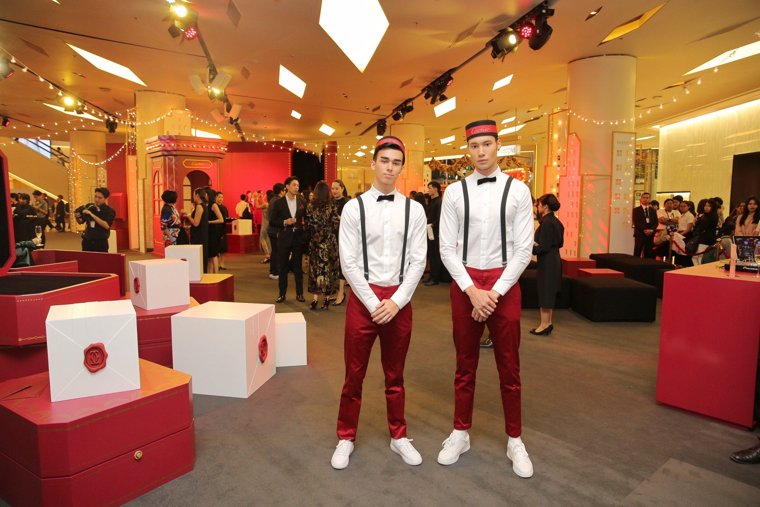 On December 14, 2017, the Cartier Red Box unveiled with a grand opening party joined by iconic red-clad Cartier Boys and VIP attendees. An exclusive cocktail soiree topped off the festive spirit of launch.