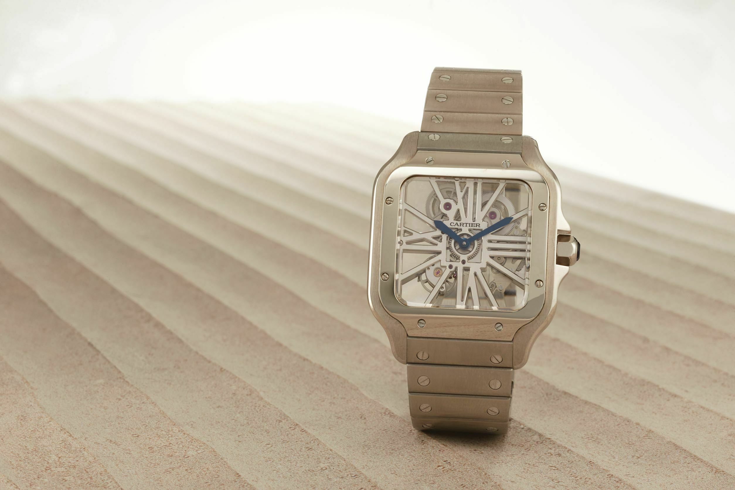การเคลื่อนไหวของโครงกระดูกได้กลายเป็นซิกเนเจอร์ของแบรนด์อย่างน่าประหลาดใจ ในส่วนที่น่าสนใจที่สุดของ Santos De Cartier Skeleton ใหม่คือสร้อยข้อมือ ระบบอัจฉริยะด้วยกลไกที่เรียบง่ายแสดงถึงความคลาสลิคในการออกแบบดีไซน์ทำให้สามารถเปลี่ยนสายนาฬิกาเป็นสายหนังได้ทันที และอีกระบบหนึ่งช่วยให้คุณปรับขนาดสร้อยข้อมือได้โดยการถอดข้อต่อออกด้วยตัวเอง