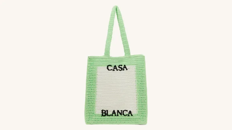 Casablanca is another brand with an embarrassment of crocheted riches, but we’re rather taken with its logo tote, which puts a homespun spin on an expected accessory (it doesn’t hurt that it’s currently on sale, too).