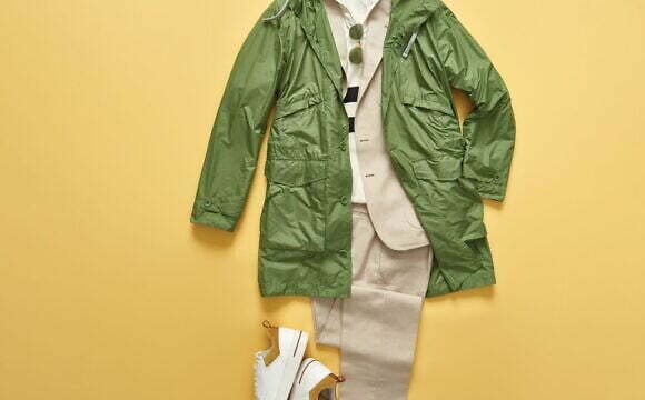 การผสมผสานระหว่างรองเท้าผ้าใบสีขาวสะอาด เสื้อพาร์ก้าเทคนิค และโปโลแบบมีซิป ซึ่งได้รับแรงบันดาลใจจากเสื้อปั่นจักรยานสไตล์วินเทจ ช่วยเพิ่มความสปอร์ตให้กับการสวมสูท The Armory by Ring Jacket เสื้อกีฬาผ้าฝ้ายและลินิน ราคา 1,350 เหรียญสหรัฐ The combination...