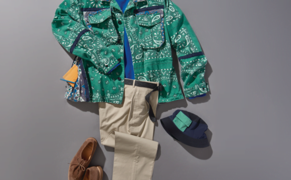 แจ็กเก็ตจังเกิ้ลลายผ้าโพกหัว เป็นการผสมผสานระหว่างสีเขียวของ Kelly และสีฟ้าของ Yves Klein เป็นการจับคู่ที่แปลกอย่างเหลือเชื่อ แต่กลับเข้ากันอย่างมีชีวิตชีวามากขึ้น แจ็กเก็ตผ้าฝ้าย Sacai ราคา 1,280 เหรียญสหรัฐ เสื้อสเวตเตอร์ผ้าแคชเมียร์ ราคา 498...