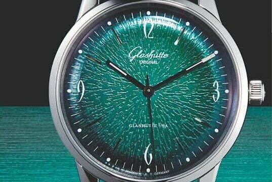 นาฬิกาคอลเลคชั่นหรู รุ่น Original Sixties ของแบรนด์ Glashütte นำเสอโดยใช้หน้าปัดสีเขียวสดใส ด้วยราคาราว ($7,500, glashuette-original.com) ผ่านกระบวนการที่ซับซ้อนเพื่อให้ได้เฉดสีที่สดใสและการออกแบบที่กระจัดกระจาย โดยเลียนแบบรูปแบบการพิมพ์หินอ่อนของรองเท้าผ้าใบ Primeknit ของ Adidas Originals...
