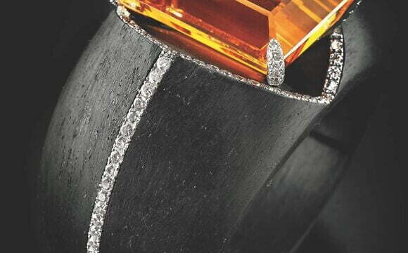 Fabio Salini Jewelry Fabio Salini ดีไซเนอร์จากโรมเบื่อเครื่องประดับคลาสสิกแบบเดิมๆ จึงหันมาใช้คาร์บอนไฟเบอร์ในการผลิตทำให้มีน้ำหนักเบา ทนทาน และตัดกันอย่างโดดเด่นกับอัญมณีล้ำค่าและทองคำ “คาร์บอนไฟเบอร์นำเครื่องประดับมาสู่มิติที่ร่วมสมัยและล้ำสมัย” เขากล่าว พื้นผิวที่เนียนเรียบและหยาบของวัสดุอุตสาหกรรมให้ความสมบูรณ์แบบสำหรับซิทรินขนาด 120 กะรัต ขนาดใหญ่ ซึ่งบรรจุอยู่ในข้อมือคาร์บอนไฟเบอร์ที่มีเพชร...