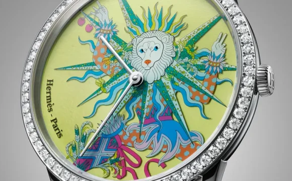 For summer, a lion is engraved in sapphire crystal and painted from the back of the...