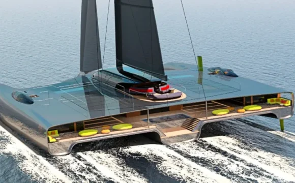 เรือลำนี้คือ Domus เรือไตรมารัน ที่ใช้พลังงานแสงอาทิตย์แล่นใบ ยาว 131 ฟุต ออกแบบโดย Rob Doyle Design และ Van Geest มีพื้นที่ภายใน 8,500...