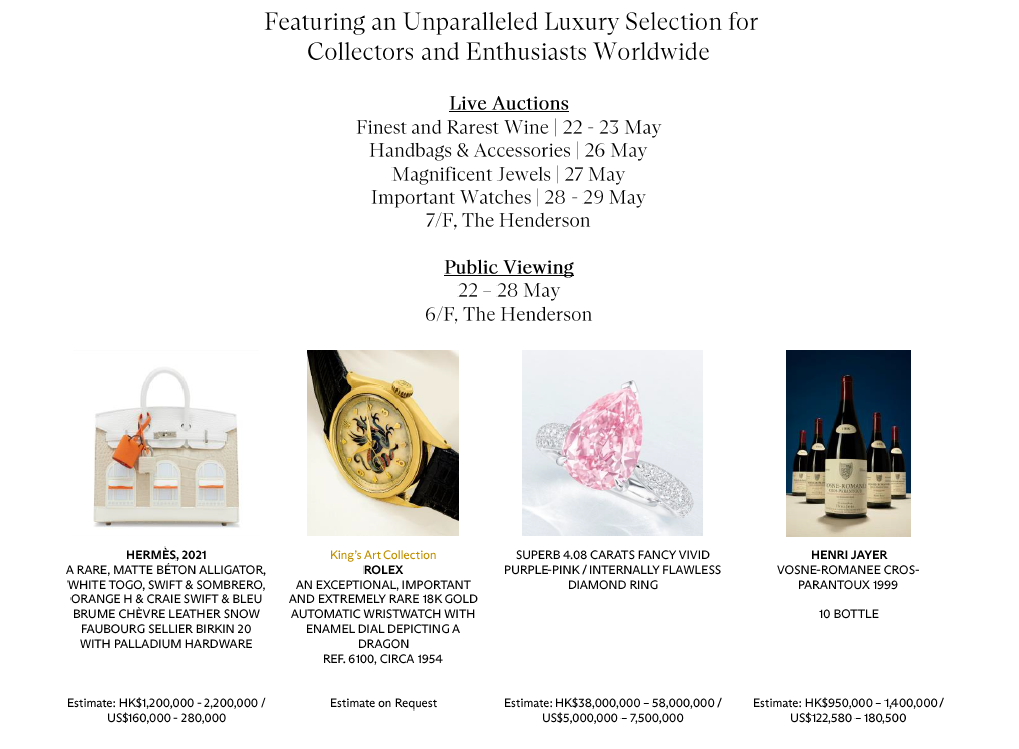 Currently, there is an online-only sale titled Fine and Rare Wines Online: Hong Kong Edition running until 24 April, with another scheduled from 13 to 26 June (dates subject to change).