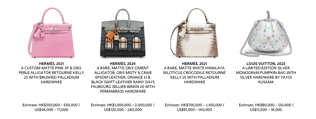 The Handbags & Accessories live sale this Spring, which continues its legacy of excellence, brings together an extraordinary assemblage of collectible treasures from three of the world’s most revered brands—Hermès, Chanel, and Louis Vuitton. Among the standout highlights are the debut of two exquisite Hermès custom creations: a refined two-tone alligator Kelly Doll and a rare matte pink Kelly 25, each a testament to unparalleled artistry and meticulous craftsmanship. This season’s curation also features a rich selection of iconic pieces, including the elusive Faubourg Birkin, an exceedingly rare 40cm black porosus Diamond Birkin, and limited-edition Louis Vuitton collaborations with visionary artists Takashi Murakami and Yayoi Kusama. An exquisite array of Himalaya crocodile handbags in various sizes adds an additional layer of rarity and refinement. This carefully curated collection is a celebration of heritage, innovation, and the enduring passion for collecting. Handbag enthusiasts are urged to experience this exquisite showcase—where every piece speaks to the timeless elegance and visionary spirit that defines the world of luxury handbags.