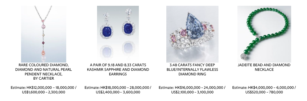 The Magnificent Jewels live auction this season features over 120 lots of exceptional and rare jewellery. Taking centre stage is The Regent Kashmir, a 35.09-carat Kashmir sapphire ring of historic significance, and The Regal Ruby, a 13.22 carat-Burmese no heat ruby which is poised to be the most valuable and largest Burmese ruby to be sold at Christie’s Hong Kong in a decade [read the press release here]. Also on offer are a 10.35 carat Colombian no oil emerald and diamond ring, as well as a pair of Colombian no oil emerald and diamond earrings weighing 7.03 and 6.92 carats.