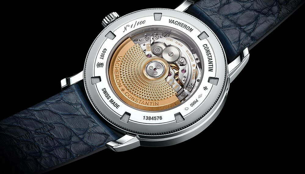 One notch below the annual calendar, the Traditionnelle Complete Calendar displays date, day and month, needing one manual date adjustment at the end of each month. Inside, Calibre 2460 QCL proffers a highly accurate platinum moon phase display and power reserve indicator. Limited to just 100 numbered pieces, this Geneva Seal-certified watch comes with a dark blue alligator leather strap hand-stitched with 950 platinum and silk thread, secured to a platinum folding clasp.