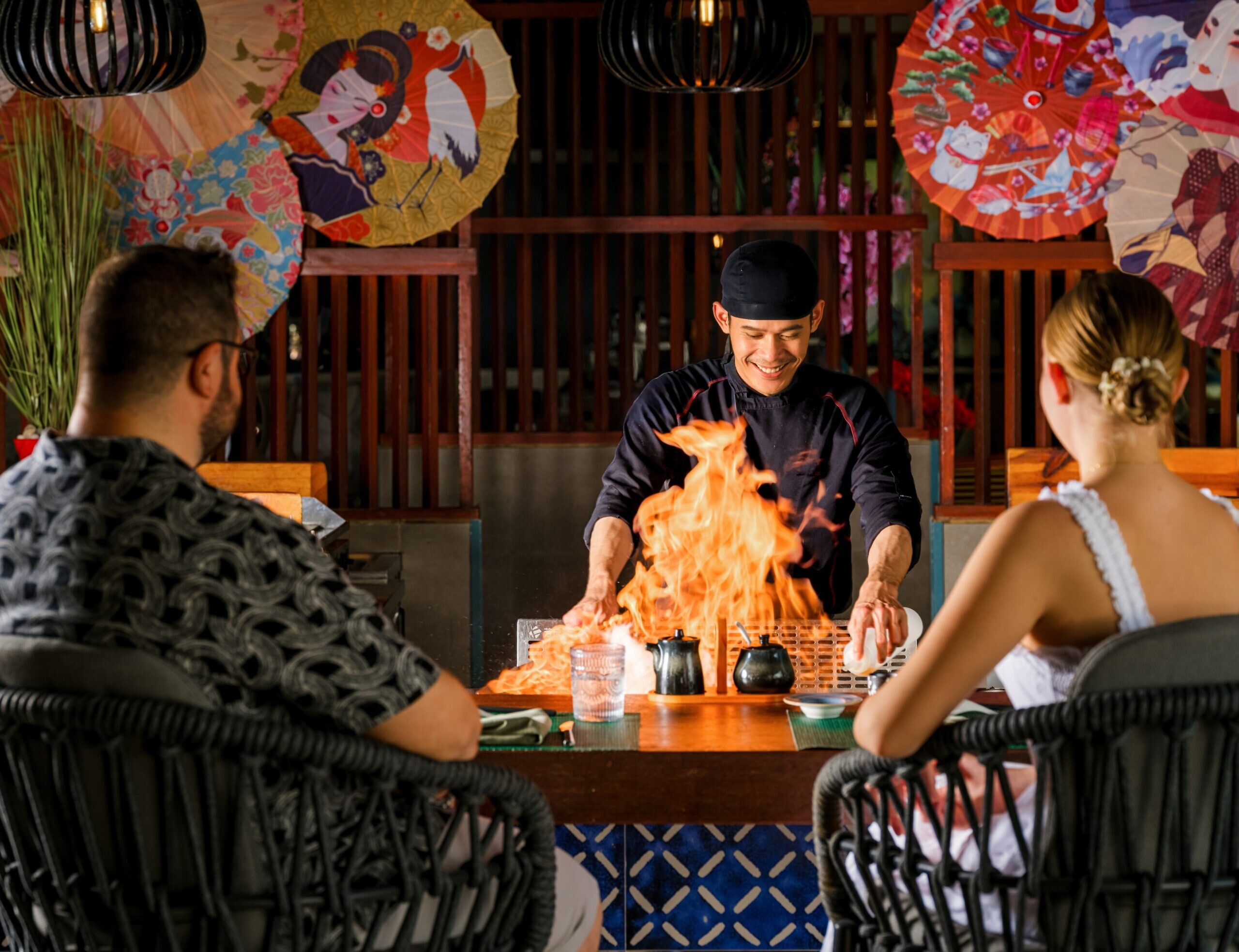 - Teppanyaki: Enjoy a mesmerising spectacle prepared by a talented chef, accompanied by some of the finest Sake wines from Japan. Delicious delicacies include Koppe faiy, yellowfin tuna nigiri, mahi mahi sashimi, Wagyu Beef Striploin, tofu nigiri, vegan shrimp, and more!
